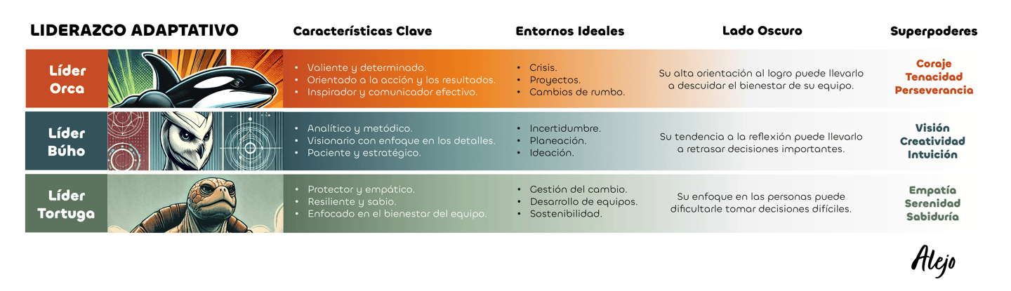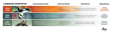 Adéntrate en las claves del liderazgo adaptativo explorando tres perfiles inspirados en la naturaleza: el líder Orca, el líder Búho y el líder Tortuga. Únete a este fascinante recorrido para identificar tus fortalezas y aprender a desplegarlas estratégicamente según las demandas de cada situación. ¡Descubre cómo liderar con maestría y versatilidad!